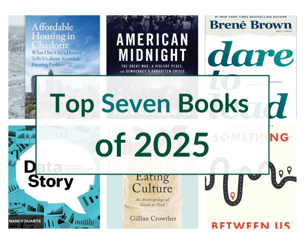 Researchers are busy people who make time to read. Our staff enjoyed a range of titles this year that gave them insight into the various topics they study. Looking for your next 2026 read? Here are seven books that Charlotte Urban Institute staff believe you must get your hands on in the year ahead: