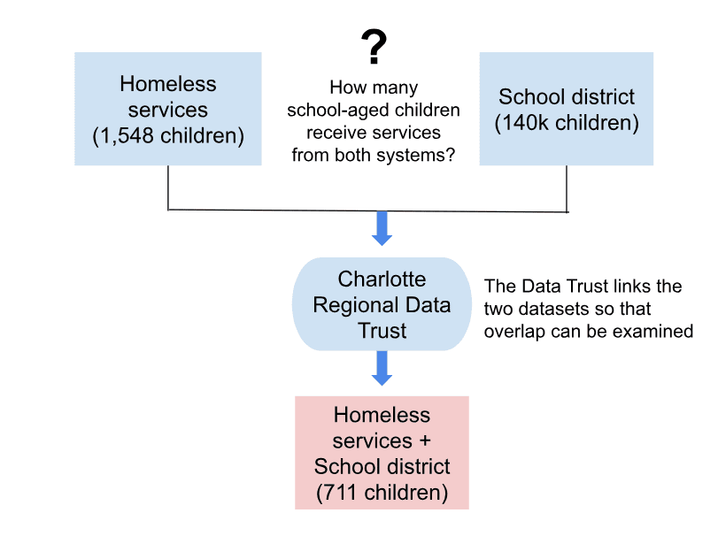 At the Data Trust, we regularly link HMIS to other data we hold. Since 2015, the Mecklenburg County and Institute partnership completed seven projects using linked data about homelessness. These reports can all be found on the Charlotte-Mecklenburg Housing & Homelessness website. We explored different populations and trends related to: